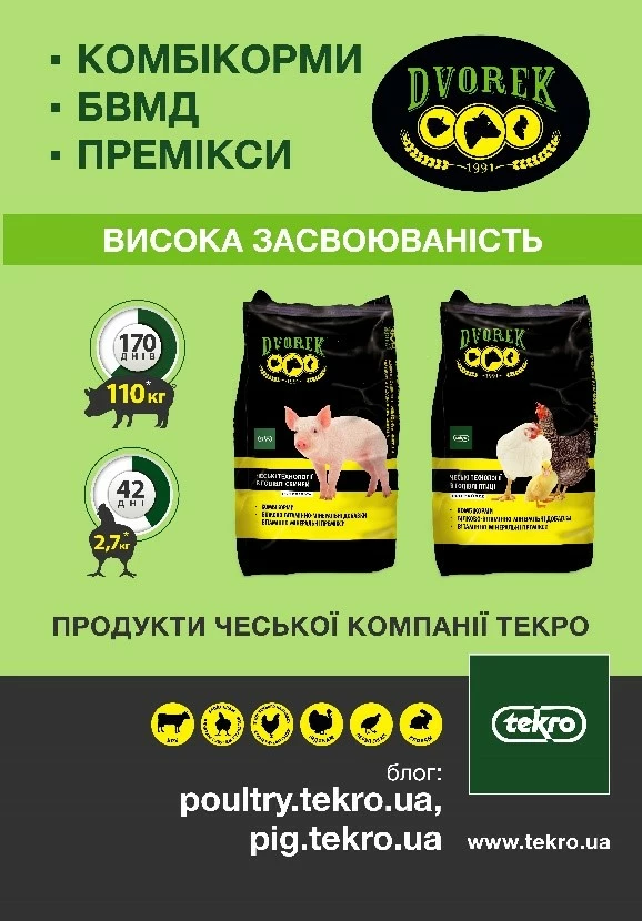 сумішей, концентратів, преміксів та готових кормів.